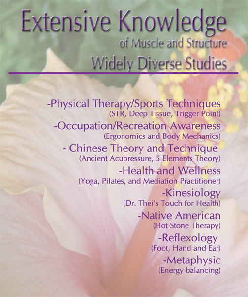 A ShaylaMassage will usually include a combination of therapeutic lomi-lomi, STR and a smattering of other techniques as needed. Shayla has studied so many modalities that adding a few minutes of another strategic technique can often add just the right 'spice' to our session together to achieve lasting results- why not give a ShaylaMassage a try!